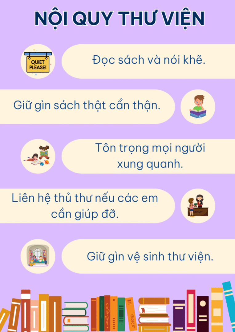 Trong thư viện của trường Tiểu học, mỗi học sinh đều phải giữ cho không gian yên tĩnh, tôn trọng sách và mọi người xung quanh. Việc trả sách đúng hạn và tình thần tự học là vô cùng quan trọng. Các em học sinh sẽ được hòa mình vào thế giới của tri thức, nơi nảy mình giữa những trang sách màu hồng và xanh, mang theo mùi của giấy in và cây viết mới mỗi khi bước chân vào.